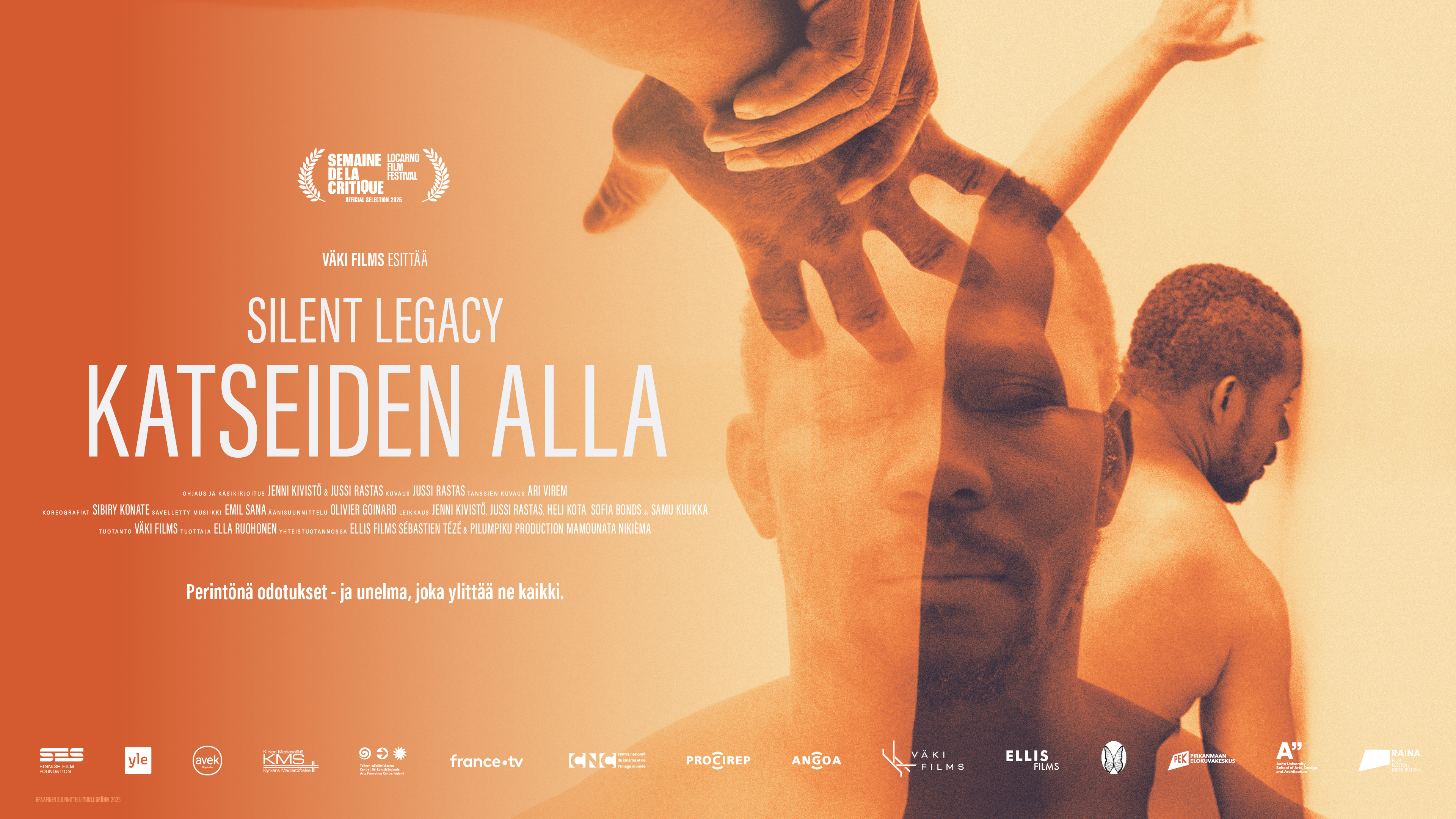 Jenni Kivistön ja Jussi Rastaan KATSEIDEN ALLA - elokuvan ensi-ilta on 13.2.2026. Locarnon elokuvajuhlilla elokuussa maailmanensi-iltansa saanut Katseiden alla (alkuperäiseltä nimeltään Silent Legacy) yhdistää seurantadokumenttia ja nykytanssia sekä tutkii identiteettiä, siirtolaisuutta ja kolonialismin perintöä.